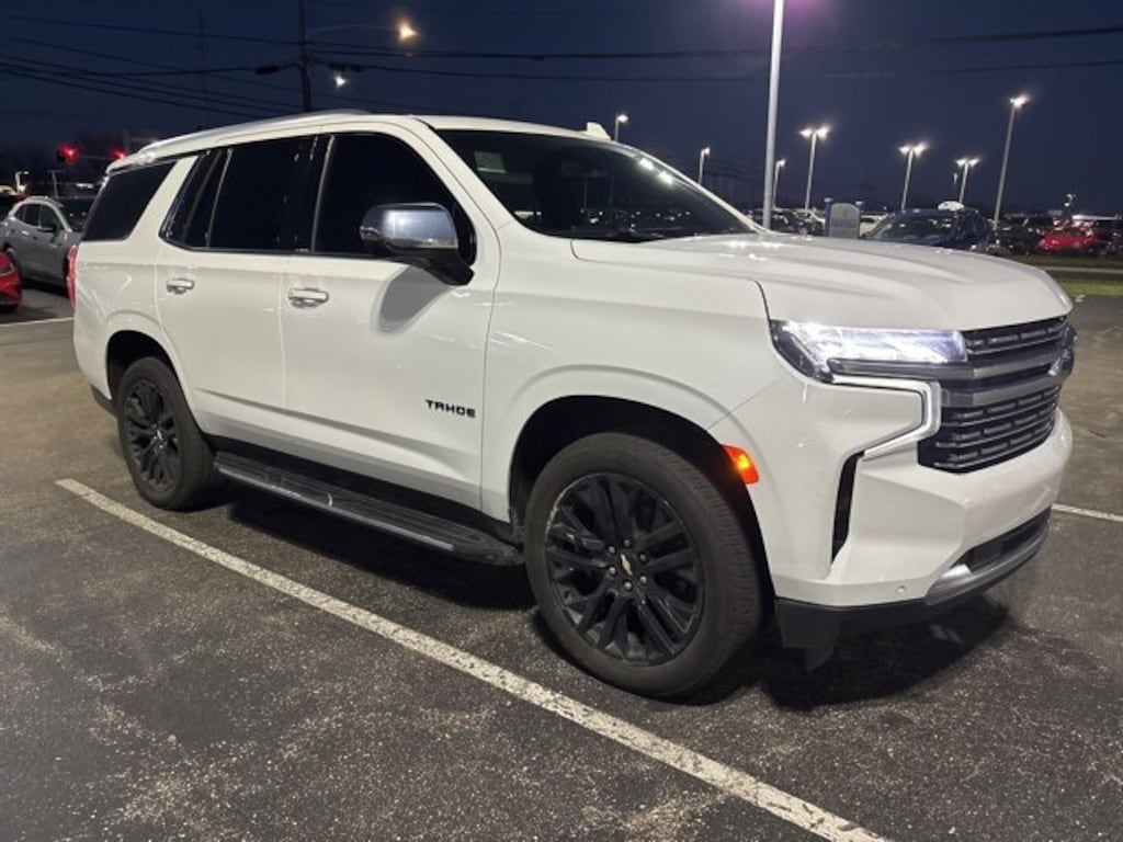 Local Trade, Remote Start, Bluetooth, GPS/Navigation, Rear Back Up Camera, Leather, Heated Seats, Sunroof / Moonroof, 7 Passenger Third Row Seating, Rear Entertainment DVD, 4WD, Tahoe Premier, 4WD, Summit White, 1st & 2nd Row Color-Keyed Carpeted Floor Mats, 2 USB Data Ports, 2-Speed Active Electronic AutoTrac Transfer Case, 3rd Row 60/40 Power-Folding Split-Bench Seat, Auto-Dimming Inside Rear-View Mirror, Automatic Heated Steering Wheel, Bose 10-Speaker Centerpoint Surround Audio Sys Ft, Bright Front & Rear Door Sill Plates, Chrome Door Handles w/Body-Color Strip, Chrome Mirror Caps, Color-Keyed Carpeting Floor Covering, Driver & Front Outboard Passenger Airbags, Dual Exhaust System, Dual-Pane Power Panoramic Sunroof, Enhanced Driver Information Center, Floor Console w/Storage Area, Front & Rear Park Assist, Hands-Free Rear Power Programmable Liftgate, HD Radio, Heated & Ventilated Driver & Front Passenger Seats, Heated 2nd Row Outboard Seats, Hill Descent Control, Infotainment Display, Lane Change Alert w/Side Blind Zone Alert, Lane Keep Assist w/Lane Departure Warning, Leather-Wrapped Steering Wheel, LED Daytime Running Lamps, Memory Settings, Outside Heated Power-Adjustable Mirrors, Power Release 2nd Row Bucket Seats, Power Tilt & Telescopic Steering Column, Preferred Equipment Group 1LZ, Rear Cross Traffic Alert, Remote Start, Safety Alert Seat, SiriusXM NavTraffic, SiriusXM Radio w/360L, Universal Home Remote, Wheels: 22 6-Spoke Low Gloss Black (LPO), Wheels: 22 x 9 Steel Interim (LPO).